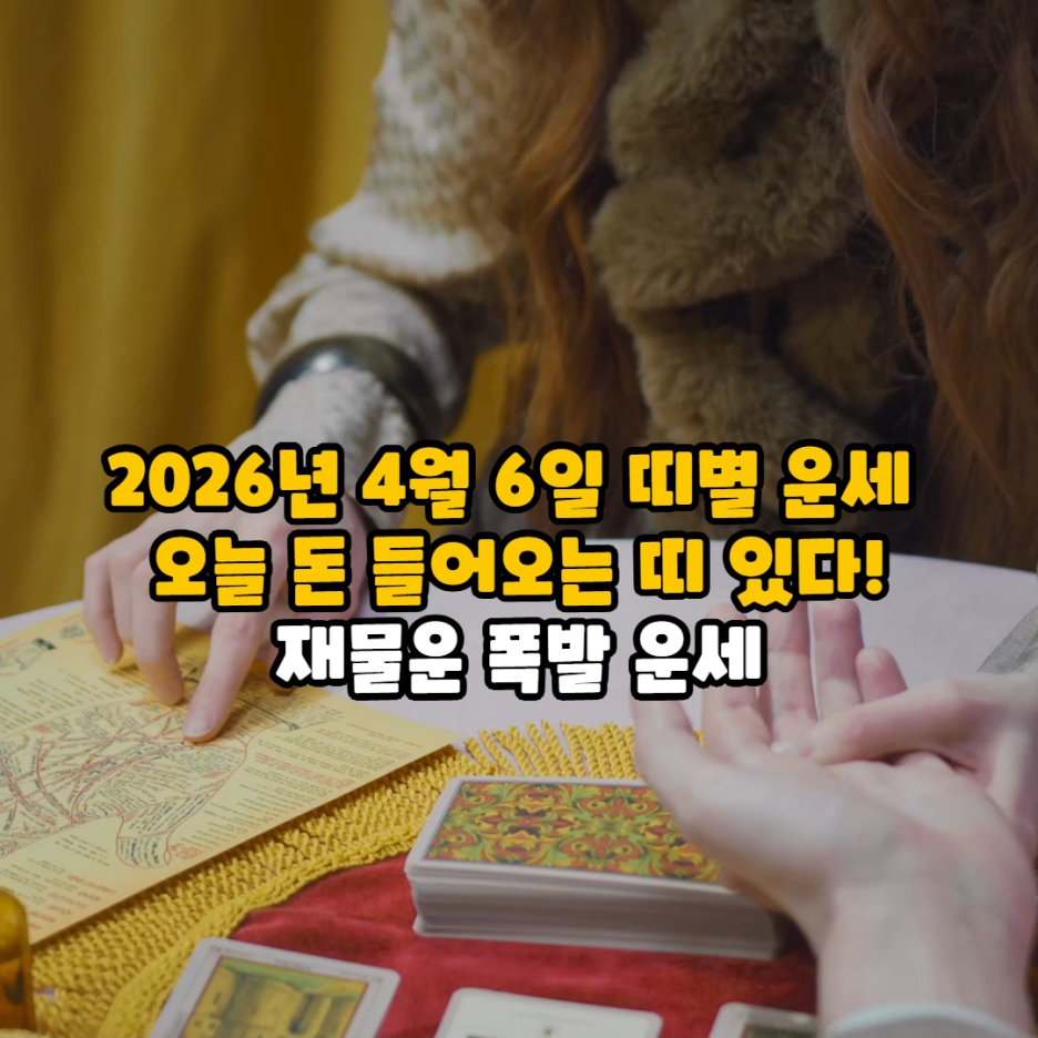 2026년 4월 6일 띠별 운세 – 오늘 돈 들어오는 띠 있다! 재물운 폭발 운세 본문